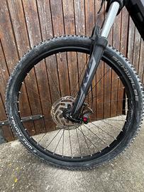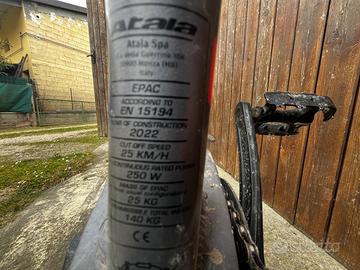 vendo per inutilizzo e-bike usata poco che presenta alcuni graffi poco visibili su forcelle e cerchi, unico problema è il pedale destro scheggiato come è visibile in foto