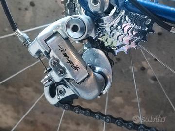 Vendo bella bicicletta da corsa Atala in acciaio tubi Columbus, misura orizzontale 56, verticale 54 cm. Bici in condizioni estetiche molto buone considerando l'età. Monta cambio indicizzato campagnolo 8 velocità con manettini sul telaio. Cambio molto raro ,in quanto essendo uscito in concomitanza con il primo ergo Power, la scelta prevalente fu per questi ultimi comandi lasciando ai margini i tradizionali manettini. Monta leve freno ,pinze e deragliatore campagnolo. Ruote campagnolo zonda su mozzi campagnolo. Si può vedere e provare al mio domicilio. Ideale per ciclostoriche