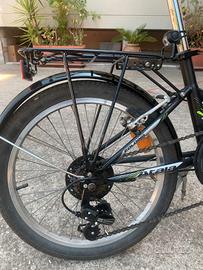 Vendo bicicletta pieghevole Atala Green Bay, utilizzata raramente e in buone condizioni generali. Presenta lievi segni di ruggine, ma è perfettamente funzionante sia nel cambio (6 marce) sia nei freni. Comoda e pratica, ideale per l’uso urbano grazie alla struttura pieghevole che ne facilita il trasporto e il rimessaggio. Dotata di portapacchi e accessori aggiuntivi installati personalmente: luce anteriore e luce posteriore sotto la sella.