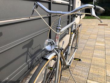 Bicicletta vintage Atala in acciaio da passeggio con cambio 2x5, parafanghi, portapacchi e fanali a dinamo funzionanti. Ruote da 28”, cerchi Nisi e sella Fizik Tempo. Tutta originale. Molto scorrevole e senza lavori da fare.