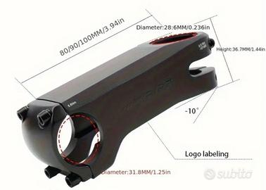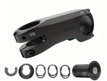 Vendo attacco manubrio RIRO ST1 Contact SL con passaggio cavi interno, ideale per bici da corsa e gravel. Disponibile in tre lunghezze: 80 mm, 90 mm, 100 mm. Realizzato in lega di alluminio CNC forgiata, ultraleggero e resistente. Compatibile con manubri da 31,8 mm e tubo sterzo da 28,6 mm (1-1/8"). Angolo ±10°, altezza stack 36,7 mm. Peso: • 80 mm → 173 g • 90 mm → 197 g • 100 mm → 210 g