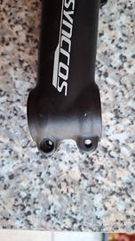 Vendo attacco manubrio in alluminio derivante da una SCOTT ASPECT 750, cambiato per riduzione di escursione. Escursione dell'attacco 90mm + 7°. Mancano due viti M5 per il fissaggio sul canotto forcella. Ømax manubrio 31.8mm