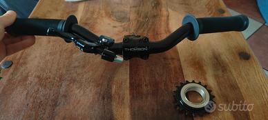 vendo attacco manubrio completo thomson 25.4 di diametro, completo di manubrio e leva freno destra, e ruota libera 18T molto rumorosa.