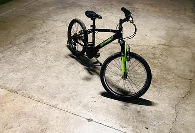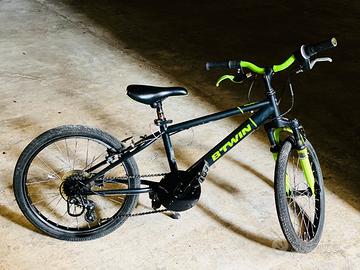Marca: B'Twin • Modello: Mountain bike (simile al Racingboy 500) • Ruote: 20 pollici • Marce: 6 velocita • Età indicativa: Bambini dai 6 ai 9 anni • Altezza consigliata: Da 120 a 135 cm • Caratteristiche: Telaio nero con dettagli verdi, forcella ammortizzata