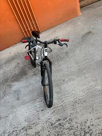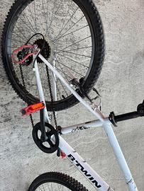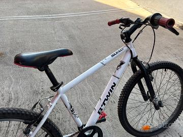 B'TWIN Rockrider 300 - Ottima base per ripristino Vendo mountain bike B'TWIN Rockrider 300 color bianco/nero. La bici è strutturalmente solida e in buone condizioni generali, ideale per chi cerca un mezzo robusto per la città o brevi sterrati. • TELAIO: Ottimo stato, qualche segno di normale usura. • CAMBIO: Funzionante con manopole rotanti. • ACCESSORI: Pedali rossi e cavalletto inclusi. • DA FARE: Entrambi i copertoni e le camere d'aria sono da sostituire totalmente (gomme usurate dal tempo). Prezzo ribassato proprio per permettere all'acquirente di montare pneumatici nuovi. Un vero affare per chi ha un minimo di manualità o cerca un progetto economico! Prezzo: 68€ Ritiro a mano: Verona Un piccolo consiglio : Visto che le gomme sono a terra, specifica che la bici va ritirata con un mezzo di trasporto (auto/furgone) perché non è marciabile al momento dell'acquisto!