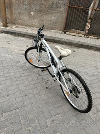Si tratta di una mountain bike da uomo, con telaio di colore bianco e forcella ammortizzata.
