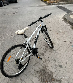 Si tratta di una mountain bike da uomo, con telaio di colore bianco e forcella ammortizzata.