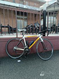 Vendo bici da corsa B’Twin Sport 3 HC in ottime condizioni, ideale per chi vuole iniziare su strada o per allenamenti. Dettagli tecnici: - Telaio: alluminio leggero con carro e forcella in carbonio – taglia M (adatta circa a 170–180 cm) - Cambio: Campagnolo Xenon 10 velocità - Componenti: gruppo Campagnolo - Freni: a pattino, efficienti e ben regolati - Ruote: scorrevoli, ideali per asfalto La bici ha percorso solo circa 100 km, quindi è praticamente pari al nuovo. Sempre tenuta con cura, nessun lavoro da fare. Ottima per principianti o per chi cerca una bici da corsa affidabile e pronta all’uso. Contattami per maggiori informazioni o foto.