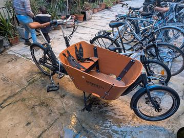 Vendo Babboe e‑City cargo bike elettrica acquistata nuova a maggio 2025, condizioni pari al nuovo, utilizzata 0 km (contachilometri Yamaha ancora a zero), sempre tenuta in cortile condominiale e mai usata su strada.Motore centrale Yamaha con display, cambio Enviolo a variazione continua, freni a disco, cassone in legno con cinture bimbo.