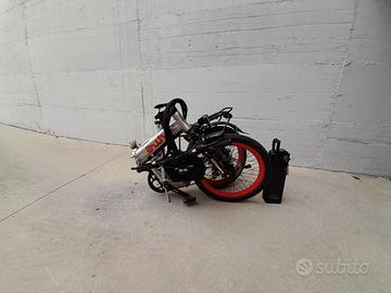 BAD BIKE AWY250W pieghevole come nuova batteria da rigenerare caricabatterie borsa copertoni antiforatura portapacchi posteriore con molla.