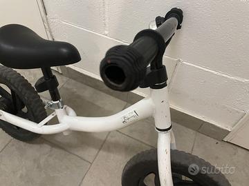 Vendo Balance Bike B-Twin colore bianco, senza pedali né rotelle. Ideale per imparare l’equilibrio e prepararsi alla bici tradizionale. In buone condizioni, completa di campanello. Ritiro a mano.