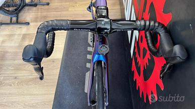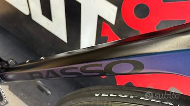 Basso Diamante SV 2022. Taglia 56. Gruppo completo Sram Force. Piega integrata Basso Levita. Sella Selle Italia. Cerchi Campagnolo Bora WTO 45. Copertoni Veloflex da 28.