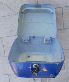 Bauletto bici con chiave per chiusura, con annesso porta pacchi per bici. Ha delle abrasioni , graffi e scolorimenti, come da foto.