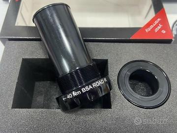 BSA è il tipo di filettatura inglese (British Standard Cycle). La filettatura inglese sulle bici da strada significa un guscio largo 68 mm, diametro interno di 34 mm con filettatura inversa sul lato guida. È lo standard filettato più comune impiegato oggi. Questo kit funziona con guarnitura ad asse passante di 24 mm di diametro, presenti su Shimano, FSA, Rotor, tra gli altri.