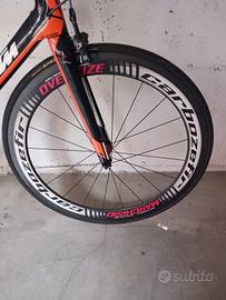 Vendesi bicicletta bici da corsa KTM Revelator con telaio in carbonio, taglia L, passaggio cavi interno, ottime condizioni, trasmissione Shimano 105 completa. Ruote Marchisio Carbozefir Oversize full carbon alto profilo, pista frenante in carbonio e tubolari (pagati oltre 1000 euro). Prezzo 700 euro.