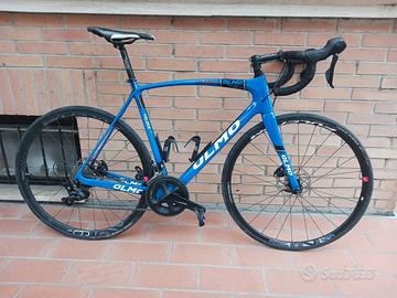 Vendesi bici da corsa Olmo Veloce Zerotre disc con telaio in carbonio Taglia L, passaggio cavi interno, gruppo completo Shimano 105 a 11v con freni a disco idraulici. Cerchi Fulcrum disc medio profilo con perni passanti. La bicicletta è perfetta sia esteticamente che funzionalmente , nessun problema. Compresi nella vendita i pedali.
