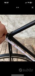Bicicletta telaio misura 57x57 come in foto Ruota posteriore a profilo alto “giro ruota” un lato scatto fisso l’altro single speed Ruota anteriore a 5 razze Freno anteriore Prezzo trattabile e di molto inferiore alla componentistica usata