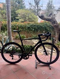 Manubrio e attacco manubrio integrale in carbonio, pedali con misuratore di potenza Favero, Montata Ultegra.
