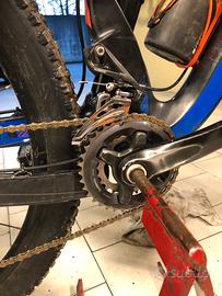 Bellissima mtb full in carbonio tag M montaggio shimano xt ,forcella fox factory 34 talas cioe regolabile con la levetta a 120 o 140mm appena revisionata,ammortizzatore rock shox 120mm,reggisella telescopico rk 125mm,cerchi mavic,manubrio switch