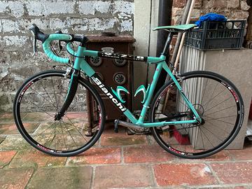 Vendo bellissima bici da corsa Bianchi leggera freni vecchio stile cassetta pignoni appena sostituita, nastro manubrio praticamente nuovo,catena nuova ancora da montare, pedali spd nuovi con scarpetta shimano n44 che regalo, la bici necessita una revisione al cambio per il resto perfettamente funzionante regalo anche completo lungo con fondello nuovo mai usato