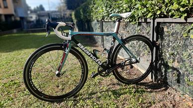 Vendo per inutilizzo, rara bici Bianchi 928 iasp Superleggera, taglia 53, in ottime condizioni estetiche, montata con: gruppo Campagnolo Super Record 11v seconda serie (numero 11 rosso), guarnitura 50-34 CULT, pacco pignoni Campagnolo Titanium 12-27, ruote alu-carbon 50mm Fulcrum Wind XLR cuscinetti USB, manubrio FSA K Force carbon, attacco FSA 0S99, sella Fizik Aliante bianco/celeste, pedali Look Keo Carbon. Il Telaio, acquistato nuovo a suo tempo, proviene dal Team professionistico Bianchi Flaminia e mai utilizzato per le corse, per cui la forcella ha la possibilità di aggiungere 3cm di spessore sotto l'attacco manubrio. Telaio acquistato nuovo nel 2012. Catena nuova, appena sostituita. Visibile per qualsiasi prova a Lissone.
