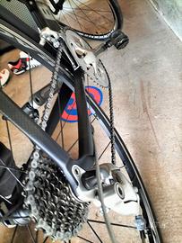 Vendo bici da corsa bianchi in carbonio pronta all'uso misura L/XL perfetta per alti da un metro e ottanta. Oltre alla bici metto due caschi pedalini professionali da ricambio pompa professionale pompetta e marsupio con kit ripara gomme e scarpette 44