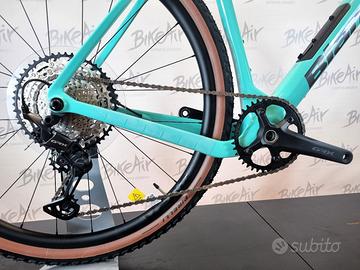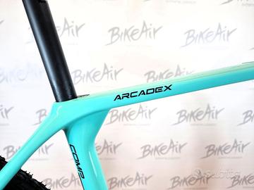Telaio: Bianchi Arcadex COMP disco in carbonio, perno passante 12x142 pinze flat mount, passaggio cavi integrato, portaoggetti a scomparsa integrato nel tubo obliquo sotto il portaboraccia, possibilità di montare copertoni larghi fino a 50mm.