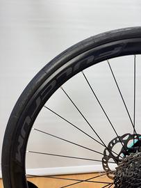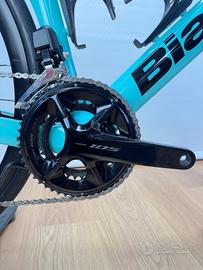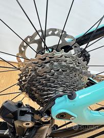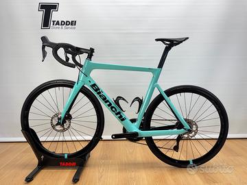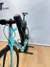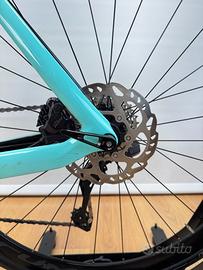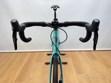 Bianchi Aria del 2022 con telaio completamente in carbonio e gruppo Shimano 105 Di2 a 12 velocità, ruote Fulcrum in alluminio, ideale per chi cerca una prima bici da corsa con freni a disco, taglia 59 di Bianchi che corrisponde ad un 57,5 di orizzontale quindi adatta per altezze da 185 a 195 cm circa. Bici utilizzata sempre in modo amatoriale ed adesso sostituita per passaggio a nuovo modello, si presenta in buone condizioni, da evidenziare ci sono dei graffi nel tubo orizzontale superficiali niente di rilevante sull’ integrità del carbonio, la meccanica e i componenti sono in perfetto stato di usura e funzionamento.