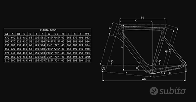 Aria E-Road carbonio, compatibile trasmissioni meccaniche/elettroniche, mov. centrale PressFit 86,5x41mm, serie sterzo 1.1/4"-1.1/8", collarino reggisella integrato, forcellini full carbon, flat mount, QR system, OLD 135mm