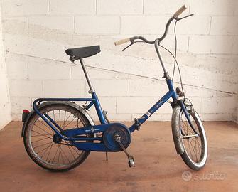 Bici Bianchi pieghevole degli anni '60, modello denominato Bianchina, ruote da 20 pollici, colore blu, tutto funzionante, anche dinamo e luci. Conservata, mai restaurata. Copertone anteriore nuovo, posteriore nuovo fornito (ma lo posso sostituire in 10 minuti). Pedali sostituiti con modello simile all'originale. Sella ricoperta, ma sotto c'è l'originale. Cedo perché possiedo troppe bici. Nel caso non lo aveste letto, si trova a Ciampino (RM). Se leggete l'annuncio, è disponibile ed è inutile chiedere se è disponibile. Non uso l'app, se avete paura di scambiare numeri di telefono, fatemi il favore di non contattarmi. Grazie.