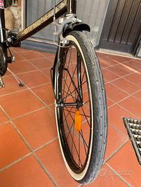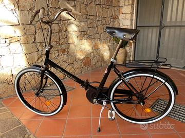 Rara ed elegante bici BIANCHI pieghevole di fine anni 60. Particolare nel suo genere per via del suo telaio dritto e le ruote da 22 3/8. Copertoni e camere d'aria sono nuovi. Restaurata e riverniciata. Tutte le parti meccaniche sono state revisionate. Componenti tutti originali.