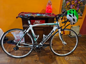Bicicletta da corsa della Bianchi praticamente come nuova. Non ha un filo di ruggine e, come potete notare dalle foto, non è stata tenuta in strada o magazzino bensì in casa, al riparo da tutto. La vendo perché non l'ho mai usata. È un po' troppo per me, vista l'età e la non perfetta forma fisica, ho paura di farmi male :p. Assieme alla bici, compreso nel prezzo, casco nuovo taglia 58-62 regolabile, computer da bici bluetooth con supporto e sensore di velocità ancora nella sua scatola (solo queste 4 cose mi sono costate 100 euro e mai usate).