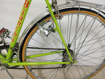 BIANCHI Condorino - Sport - Turismo - Vintage Anni 60 - Bianchi Condorino - Sport - Turismo - Vintage anni 60 - taglia 57 x 55 ..... cerchi 28" in acciaio Sanremo - gruppo cambio Campagnolo Valentino Extra 10 velocità ( 5 x 2 ) - pacco pignoni Regina GS Corse - Vernice e decalcomanie originali - cromature perfette , no ruggine - gruppo luce Gev - Sella Cuoio spazzolato tipo Brooks Nuova ( l' originale era ormai ingottata ) - Gomme Nuove ( le originali erano ormai inutilizzabili ) Puntapiedi Rec Special - piccoli segni di normale utilizzo - richiede solo lubrificazione perché ferma da oltre 25 anni - ottime condizioni nel complesso.possibilità di spedizione con adeguato imballo e tracciabilità ( a carico acquirente ) o consegna a mano.