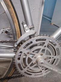 Vendo bici da corsa marca Bianchi. La bici è stata completamente restaurata. eseguita verniciatura telaio, nuovi: copertoni e camere d'aria, catena, nastro manubrio, fili freni, cambio e guaina. La bici presenta deragliatore e leve cambio campagnolo, freni universal, manubrio 3tt. Bici vintage anni 70, perfetta per Eroica.