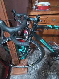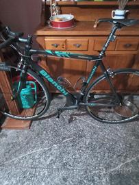 bici da corsa , Bianchi in carbonio, Full carbon ( 6 kg ) ,cambio Dureise, ruote Mavic , taglia L , computerino , sella Selle Italia..vendo completa di 2 caschi , scarpe nuove nero antracite con tacchette n .45 ,copri scarpe , guanti , occhiali . euro 600 trattabili.