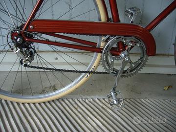 Telaio realizzato con il famoso tubo calibrato Bianchi, manubrio 3ttt, sella originale in pelle scamosciata San Marco Corsaire, cambio Campagnolo Nuovo Gran Sport.