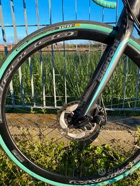 Vendo causa inutilzzo bellissima e super customizzata bici da corsa Bianchi Impulso taglia 57. L’unica cosa rimasta “stock” é la trasmissione del gruppo Shimano 105, tutto il resto è aftermarket, di cui: manubrio gravel “reparto corse” Bianchi, reggimanubrio in carbonio “reparto corse”, freni a disco maggiorati “Ultegra”, pinze maggiorate “Shimano”,reggisella alleggerito in carbonio “reparto corse”, sella “Seta S1” Selle Royal, ma sopratutto i bellissimi cerchi Campagnolo “Scirocco” che fanno da soli una differenza incredibile a questa bici, sia nella scorrevolezza, nella risposta all’impulso e al colpo d’occhio 😉 Lascio anche i pedali Keo “classic” e il supporto Garmin ufficiale inclusi. Presente qualche leggero graffio sul telaio, sempre ritoccati. Prezzo leggermente trattabile. Solo consegna a mano Bergamo.