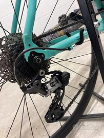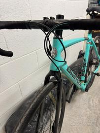 Forcella: bianchi Full carbon 1-1/8 , leggera e assorbimento delle virbazioni con attacco per freni a disco e asse pesante 12X100mm.