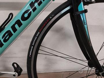 BICI DA CORSA TAGLIA 54 ( 165 - 175) BEN TENUTA FRENI CAMBIO ULTREGA SELLA FIZIK CERCHI IN ALLUMINIO RUOTE NUOVISSIME VITTORIA PRO CATENA CON 600 KM.