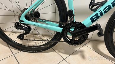 Vendo Bianchi Infinito in condizioni pari al nuovo, usata circa 3.000 km, sempre curata. Bici endurance di alto livello, molto comoda ma anche reattiva, ideale per lunghe distanze e grantondo. Specifiche: • Telaio Bianchi Infinito in carbonio • Taglia 53 •Gruppo Shimano 105 Di2 elettronico 12V • Powermeter Shimano Ultegra •Ruote Fulcrum in carbonio profilo 40 mm •Freni a disco idraulici Stato: • Manutenzione completa appena effettuata •Cambio e freni perfettamente regolati • Nessuna caduta, nessun segno strutturale • Pronta a pedalare Consegna a mano.