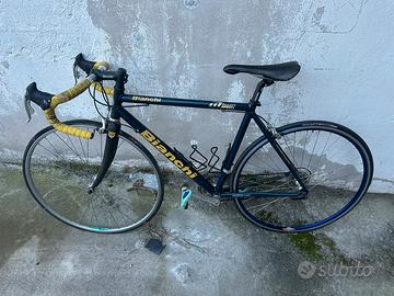 Bici da strada Bianchi Malloy Pro Reparto Corse in colore blu con dettagli gialli. Telaio in alluminio forcelle in carbonio . Cambio csmpagnolo veloce. Cerchi Mavic