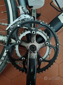 Vendo bianchi ML3 Alloy, taglia XL (sono alto 1,90) con gruppo Campagnolo 10v Centaur compreso di portaborraccia e pedali. La bici è vecchia, presenta segni di usura sul telaio ma nessuna crepa, inoltre ha bisogno di manutenzione ovvero regolazione del cambio, freni e cerchi nulla che un meccanico non faccia con poco