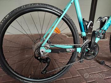 vendo bici bianchi nirone gravel, 10 mesi dall' acquisto, praticamente nuova,alluminio Idroformato e forcella in carbonio taglia 57 acquistata a febbraio 2025 freni a disco grx idraulico, cambio anteriore e posteriore tutto grx schimano guarnitura doppia e pacco pignoni 10 velocità,consegna a mano.