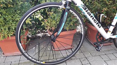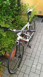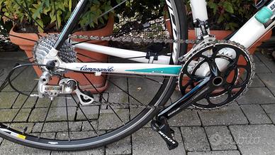 bicicletta in perfette condizioni cambio Campagnolo veloce 2x10 velocità, cerchi e gomme nuove, manubrio dritto con comandi originali Campagnolo molti accessori in carbonio per la misura del telaio M , centro tubo sella e centro manubrio 52cm ottima per donna che vuole cominciare ciclismo prezzo poco trattabile.