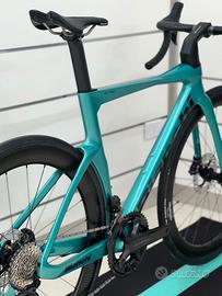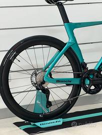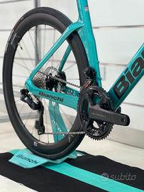 Bici da corsa Bianchi Oltre Comp Ultegra nella bellissima colorazione celeste metallizzato.