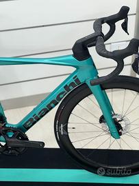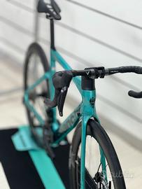 Bici da corsa Bianchi Oltre Comp Ultegra nella bellissima colorazione celeste metallizzato.