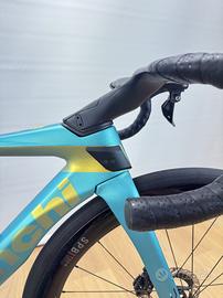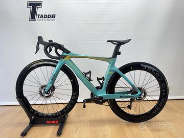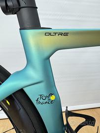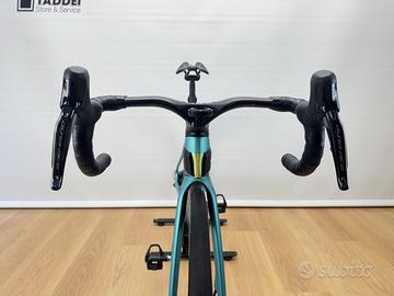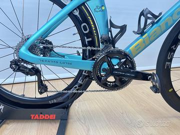 Bianchi Oltre RC edizione limitata del 2023 colorazione speciale creata in occasione del 110° Tour De France solo 176 pezzi nel mondo e questa è la numero 93, super bici introvabile che veniva venduta a 15.500E montata completamente al top di gamma con gruppo Shimano Dura-Ace a 12 velocità con misuratore di potenza Shimano integrato alla pedivella, ruote Reparto Corse Bianchi 65 posteriore e 50 anteriore, sella Reparto Corse Limited Edition Tour De France, un vero missile di bici per veri intenditori. Bici che vendiamo per conto di un nostro cliente che non utilizza più, come si può vedere dalle foto è perfetta ed avrà percorso circa 4000km, l’unico segno presente è sul tubo orizzontale visibile nelle foto. Taglia 47 che corrisponde ad 51,5 cm di orizzontale ed è adatta per altezze al di sotto di 170 cm circa. Sarà venduta completa di documentazione originale del proprietario per originalità e garanzia.