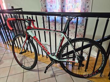 Vendo bici completa Bianchi Oltre misura 55, gruppo completo Campagnolo Super Record 11v Revolution, con ruote Campagnolo Bora ultra 35, tutto in ottime condizioni. Telaio del 2013, gruppo 2014, ruote 2020. La bici è rimasta ferma da novembre 2016 fino a settembre 2025, quindi è poco sfruttata. il gruppo funziona come un orologio ed è di una precisione assoluta. sterzo 3T Ergonova Team in Carbonio da 180gr. Tutto integro e senza difetti. Catena cambiata a febbraio 2026 con soli 150km di utilizzo. bici da veri intenditori.