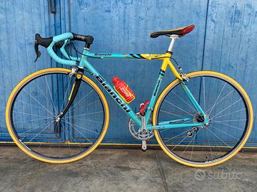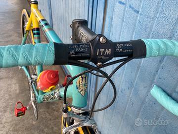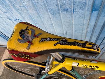 Da mia collezione privata vendo Banchi mega pro L primi anni 2000 mercatone uno replica Pantani taglia 54 . Monta forcella bianchi carbonio SELLA PIRATA PANTANI prima serie molto rara , cerchi campagnolo electron introvabili , manubrio itm super italia attacco manubrio ITM big one 110 ( misura che usava Marco) nastro Bianchi , guarnitura corus , leve freni e cambio campagnolo centaur carbonio pedali Look . Piccoli segni da utilizzo . Borraccia originale tour de france rara! Prezzo trattabile dopo visione.