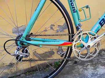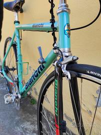 Bici da corsa Bianchi da collezione. Telaio Mega Pro alu 7001 Esclusiva Reparto Corse Forcella carbon Bianchi Componenti Dura Ace Shimano Sella San Marco Tenuta maniacalmente. Raro modello vintage, pronta anche per Eroica.